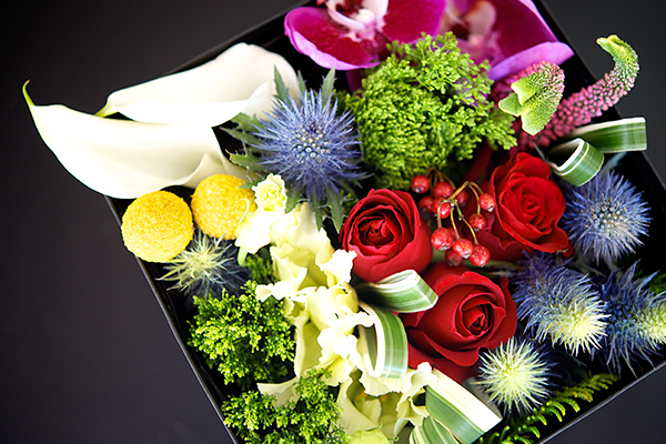 お花をフタ付きのボックスにアレンジした商品です。